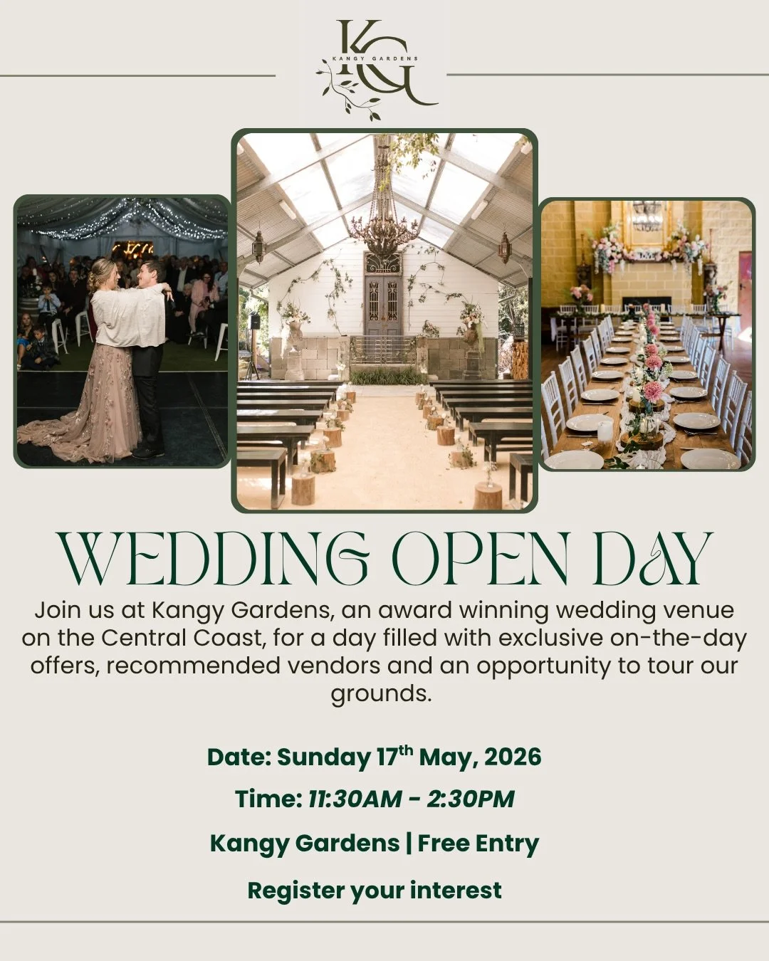 Join Kangy Gardens for our Wedding Open Day, your first step to planning a Central Coast celebration.